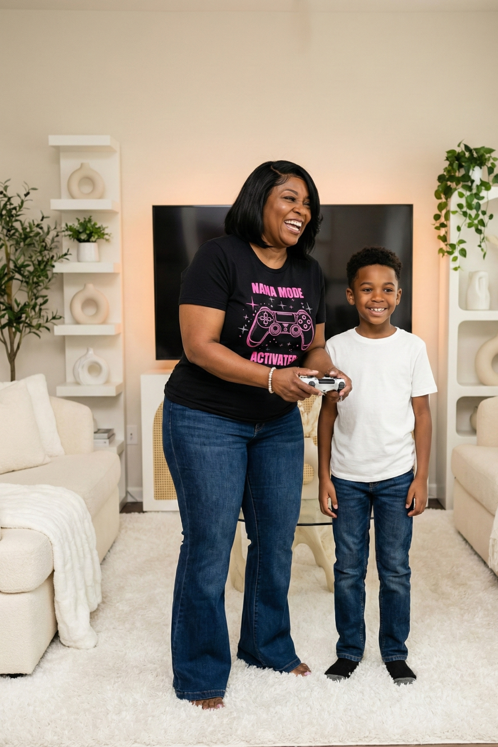 This playful design combines retro gaming vibes with a touch of grandma pride. Featuring gaming controller elements and bold typography, it's perfect for the modern grandmother who's young at heart and ready for action - whether that's babysitting grandkids or beating the high score.